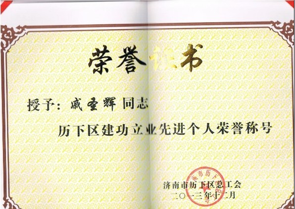 濟(jì)南連心物業(yè)有限公司常務(wù)副總經(jīng)理戚圣輝同志工作認(rèn)真負(fù)責(zé),大膽潑辣,刻苦學(xué)習(xí),積極鉆研業(yè)務(wù),各項(xiàng)工作處理的有條不紊,取得了顯著成績,被授予“歷下區(qū)建功立業(yè)先進(jìn)個(gè)人”榮譽(yù)稱號(hào)。(劉冠英/文)