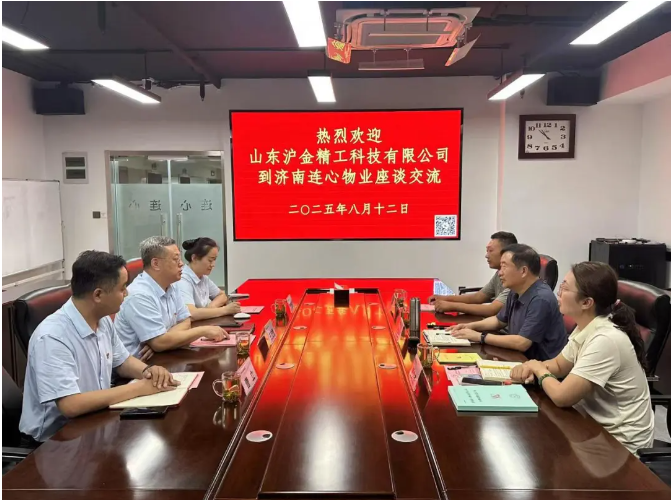 2025 年8月12日上午,山東滬金精工科技股份有限公司董事長孟繼云,黨支部書記、人事行政經(jīng)理賈文杰等到濟(jì)南連心物業(yè)進(jìn)行工作互動交流。連心物業(yè)黨支部書記、董事長王宏勇,黨支部副書記、總經(jīng)理曹立、辦公室主任孫耀先等參加此次工作交流接待活動。