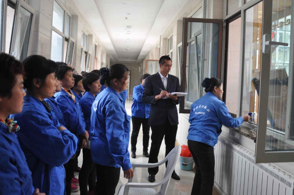 比賽伊始,是山東省文化館項(xiàng)目帶來的會服展示。山東省文化館項(xiàng)目的會服人員是連心物業(yè)的一道亮麗風(fēng)景線,她們專業(yè)的講解知識,大方得體的服務(wù)禮儀無不讓在場的選手拍手叫好。隨后各工種在指定的比賽場地開始了激烈的比賽。維修組:線路接駁要求、入室維修流程、知識問答;保潔組:衛(wèi)生間清理、擦拭玻璃、知識問答;綠化組:草坪修剪、灌木整型、知識問答。消防組:滅火器使用展示、消防水袋連接(2盤)展示、理論考試。比賽中,各位選手精神飽滿,沉著應(yīng)戰(zhàn)。秩序維護(hù)形象展示將整個(gè)比賽活動(dòng)推向了高潮。盾牌操、車輛指揮、交接班展示、接待不速之客的技巧(接打電話技巧)、知識問答。整齊響亮的口號、行云流水般的動(dòng)作演示,展現(xiàn)出連心員工良好的精神風(fēng)貌,充分證明了我們的秩序維護(hù)在用自己的實(shí)際行動(dòng)去詮釋公司的服務(wù)宗旨及理念,為托管單位提供安全有序的工作環(huán)境。