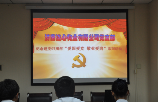 2018年6月29日下午14:00,為紀念中國共產(chǎn)黨成立97周年,濟南連心物業(yè)有限公司黨支部舉行了“愛國愛黨 敬業(yè)愛崗”迎“七一”系列活動。本次活動由公司黨支部副書記、總經(jīng)理戚圣輝同志主持,黨支部全體黨員、入黨積極分子、二級主管及以上管理人員40余人參加了本次慶祝活動。