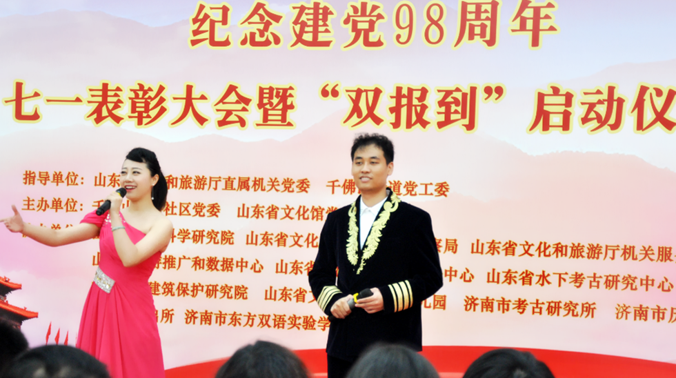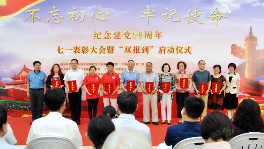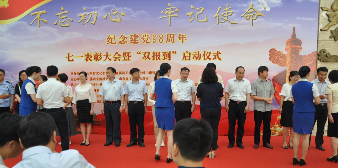 出席此次啟動儀式的重要來賓有省委“不忘初心 牢記使命”主題教育第六巡回指導(dǎo)組副組長劉杰、省委“不忘初心 牢記使命”主題教育第六巡回指導(dǎo)組成員孫守軍、山東省文化和旅游廳黨組成員、副廳長、機關(guān)黨委書記胡上山、山東省文化和旅游廳直屬機關(guān)黨委專職副書記祝暉、山東省文化和旅游廳直屬機關(guān)黨委副書記、紀委書記葉樹茂、山東省文化館館長王衍良、千佛山街道黨工委副書記、辦事處主任孟昭軼、千佛山街道黨工委副書記、政協(xié)工作室主任羅茜,以及各“雙報到”單位負責(zé)人。