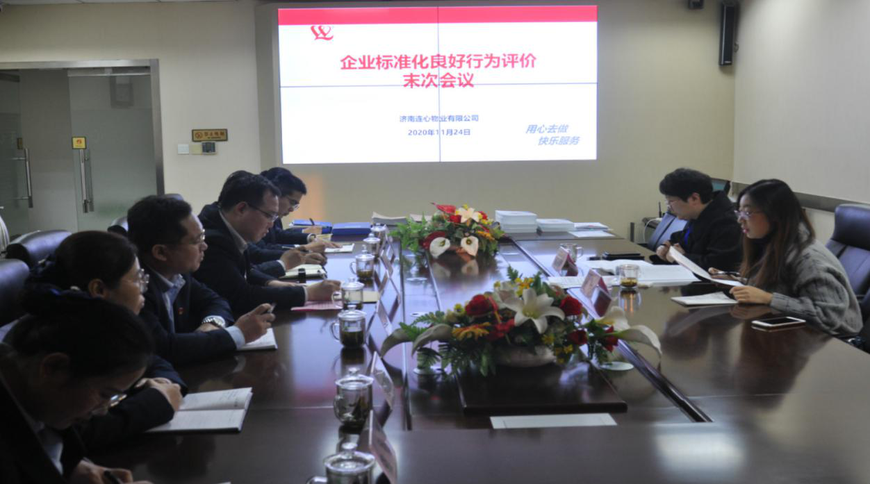 2020年11月24日,濟(jì)南連心物業(yè)有限公司順利通過(guò)中國(guó)標(biāo)準(zhǔn)化協(xié)會(huì)專(zhuān)家組驗(yàn)收,建立了健全、高效、實(shí)用的標(biāo)準(zhǔn)體系,運(yùn)行實(shí)施有效,符合GB/T 15496-2017、GB/T 15497-2017、GB/T 15498-2017、GB/T 35778-2017、GB/T 19273-2017國(guó)家標(biāo)準(zhǔn)要求,達(dá)到AAA級(jí)。