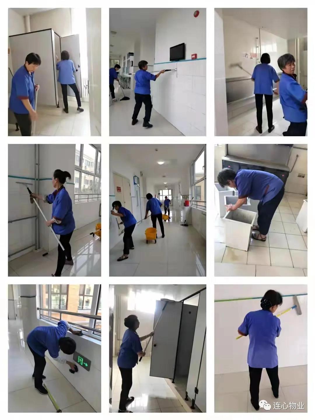 為保障學(xué)生順利開學(xué),連心物業(yè)項(xiàng)目經(jīng)理姜田田提前半個月對該項(xiàng)目進(jìn)行統(tǒng)籌工作安排、規(guī)劃。她帶領(lǐng)全體物業(yè)員工對校園功能場館衛(wèi)生、教學(xué)樓衛(wèi)生、外圍衛(wèi)生、設(shè)施設(shè)備檢查等做了詳細(xì)部署。為保障開學(xué)后學(xué)生和老師能夠在教學(xué)樓內(nèi)舒心的辦公和學(xué)習(xí),我們針對存在的問題制定了一系列可行性工作方案,教學(xué)樓內(nèi)的衛(wèi)生是開學(xué)前的最重要環(huán)節(jié)。首先,做好樓內(nèi)的消毒消殺工作,開窗通風(fēng)等,為員工定崗定量,保證每日的工作都是高標(biāo)準(zhǔn)的完成,教學(xué)樓玻璃擦拭、衛(wèi)生間死角清理、消毒,窗臺扶手和墻壁的擦拭等,各項(xiàng)目工作都在開學(xué)前順利完成。